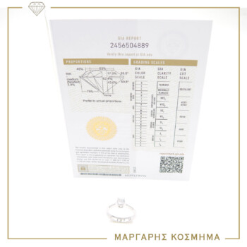 Λευκόχρυσο Μονόπετρο Δαχτυλίδι με διαμάντι κοπής μπριγιάν , σε απόχρωση F-VVS1.