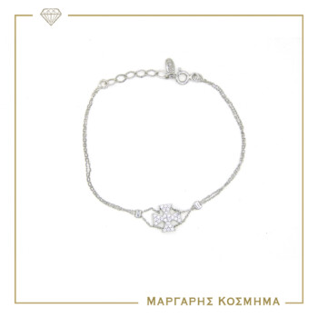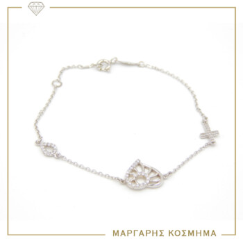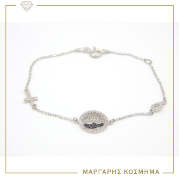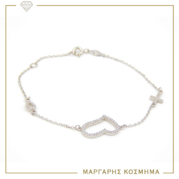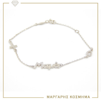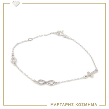 SILB003 Βραχιολι ασημενιο χρωμα λευκο σταυρος με πετρες ,εχε κρικους αυξομειωσης
