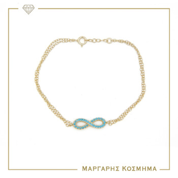 SILB004 Βραχιολι ασημενιο χρωμα χρυσο απειρο με μπλε πετρες και προεκταση αλυσιδας