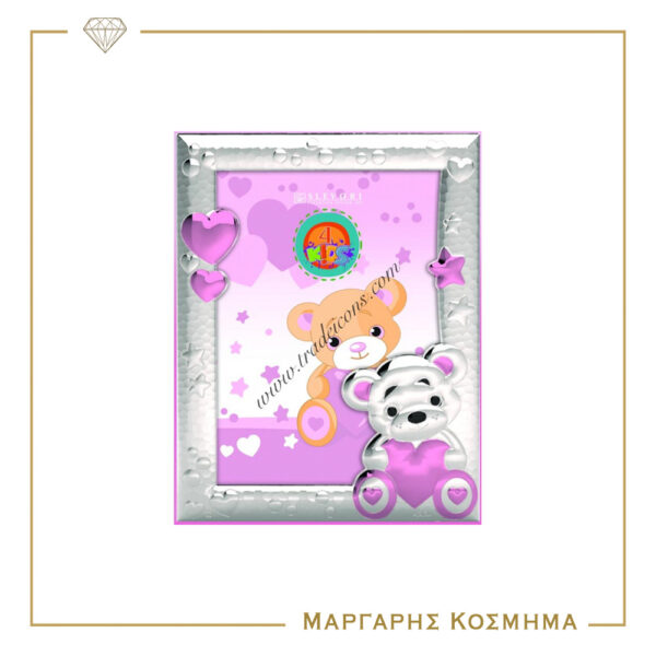 Παιδική κορνίζα αρκουδάκι ελεφαντάκι με ροζ λεπτομέρρειες για κορίτσι 16.5x13cm