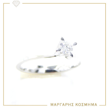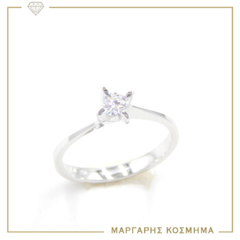 BR145 Λευκόχρυσο Μονόπετρο Δαχτυλίδι Με Μπριγιάν