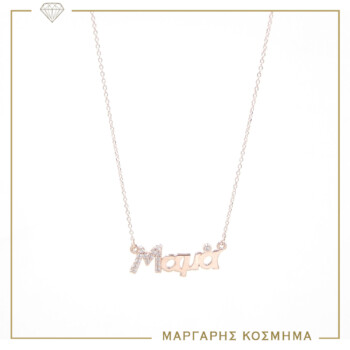 Ροζ Χρυσό Κολιέ Στα 9- Καράτια, Μαμά Με Πέτρες