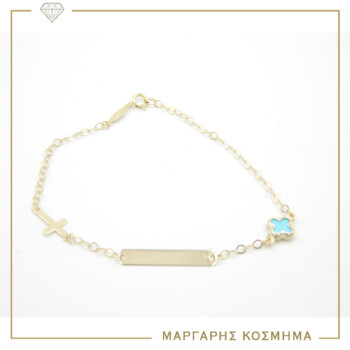 Ταυτότητα Κίτρινο Χρυσό Κ-9 Με Τυρκουάζ Και Σταυρό.