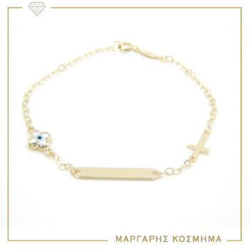 Ταυτότητα Κίτρινο Χρυσό Κ-9 Με Σταυρό Μάτι Και Σταυρό.