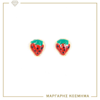 Σκουλαρικια χρυσα παιδικα Κ-14 φραουλες με σμαλτο,κούμπωμα ασφαλες μεγαλο.