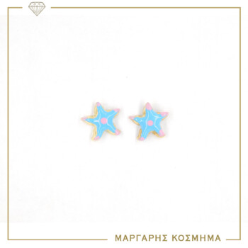 Σκουλαρικια κιτρινο χρυσο παιδικα Κ-14 αστεριες γαλαζιοι και ροζ,κούμπωματα μεγαλα ασφαλειας.