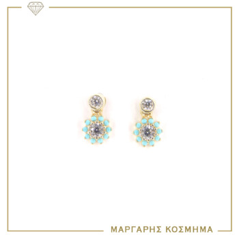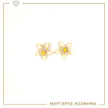 Σκουλαρικια κιτρινο χρυσο Κ-14 ομορφο εφηβικο σχεδιο ροζετα με σμαλτο και ζιργκον,κούμπωματα πεταλουδες.