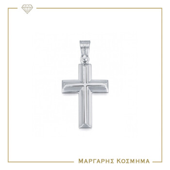 Κλασικός σταυρός αρραβώνα ή βάπτισης απο λευκόχρυσο 14 καρατίων που συνδυάζει την αμμοβολή με το λουστρέ φινίρισμα!