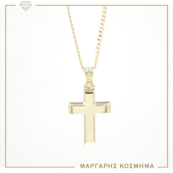 Σταυρός κίτρινο χρυσό Στα 14 Καράτια Με Αλυσίδα.