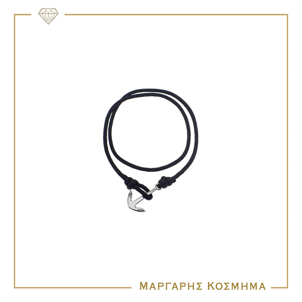 Ανδρικό βραχιόλι με κορδόνι και μεταλλική άγκυρα (μαύρη ή λευκή). Το βραχιόλι κουμπώνει με την άγκυρα και προσαρμόζεται στο χέρι με την αυξομειούμενη θηλιά στο πίσω μέρος της.
