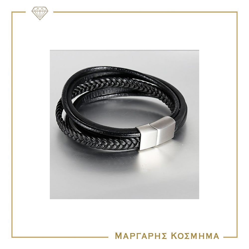 Ένα μοντέρνο ανδρικό βραχιόλι σε μαύρη απόχρωση με διαφορετικές πλέξεις και με μαγνητικό κούμπωμα ασφαλείας.