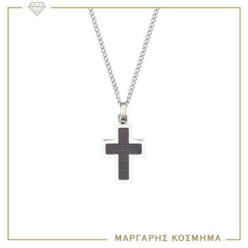 US POLO JW6002NK Ανδρικός σταυρός από ανοξείδωτο ατσάλι σε μαύρο και ασημί ασημί χρώμα συνδυασμένο με αλυσίδα μήκους 50cm!