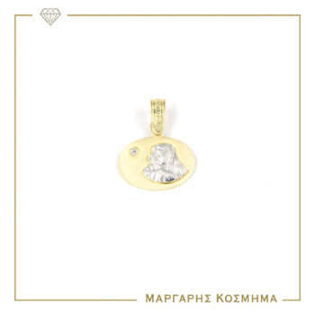 Κρεμαστό Φυλαχτό Δίχρωμη Παναγίτσα, από χρυσό, με ανάγλυφες λεπτομέρειες και ένα μπλε ματάκι