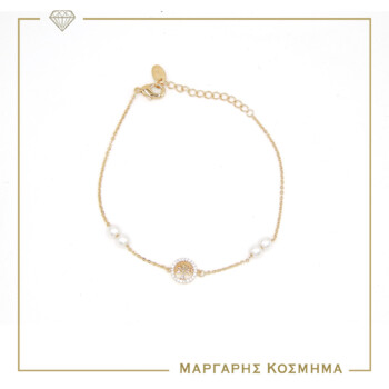 STL-39 Βραχιολι ατσαλι χρωμα ροζ χρυσο δεντρο ζωης και περλες