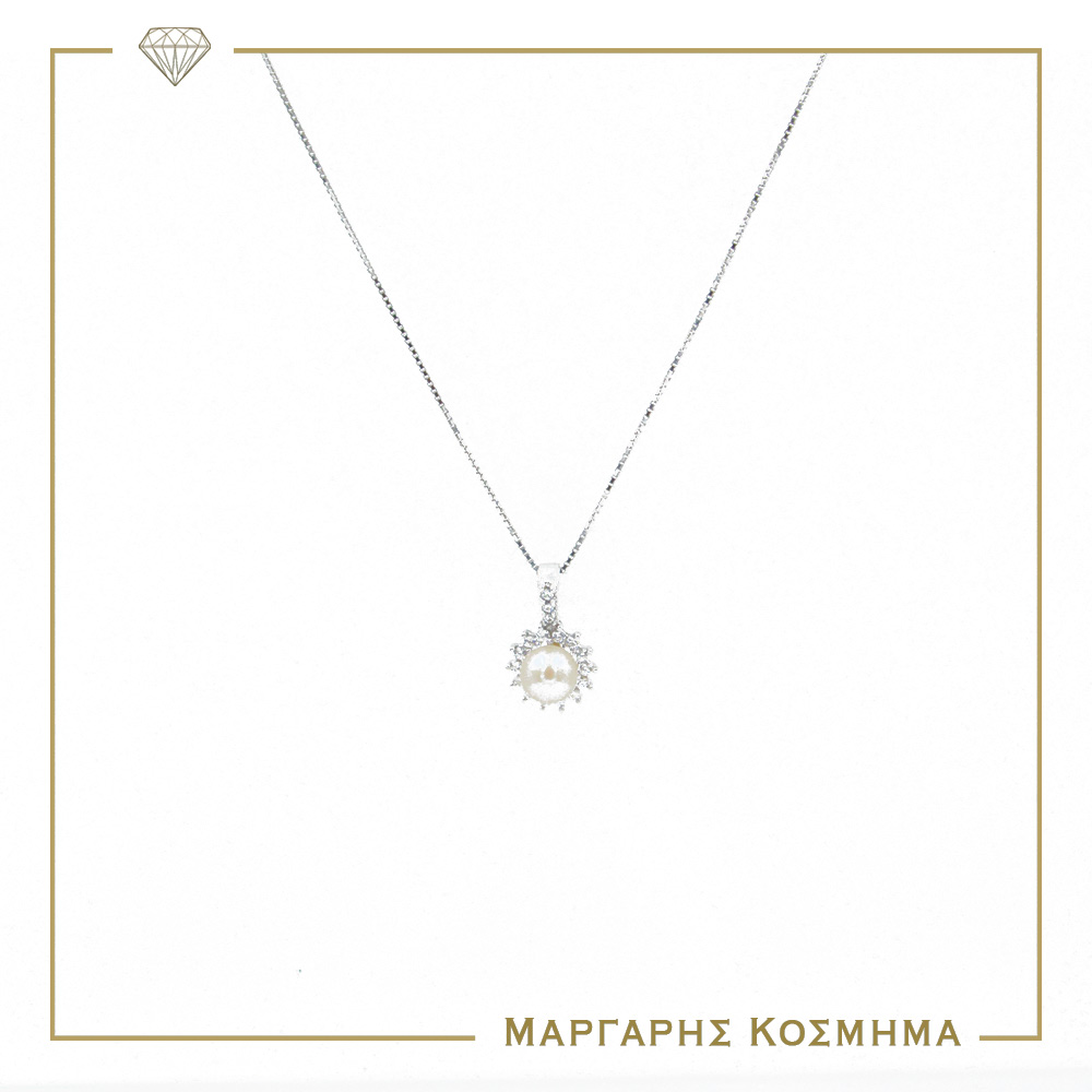 Πανέμορφο γυναικείο λευκόχρυσο κολιέ Κ14 με μοτίφ!