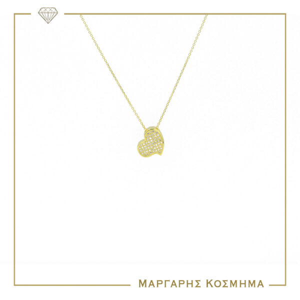 Υπέροχο γυναικείο κολιέ σε κίτρινο χρυσό Κ14 με καρδιά στολισμένη με πέτρες.
