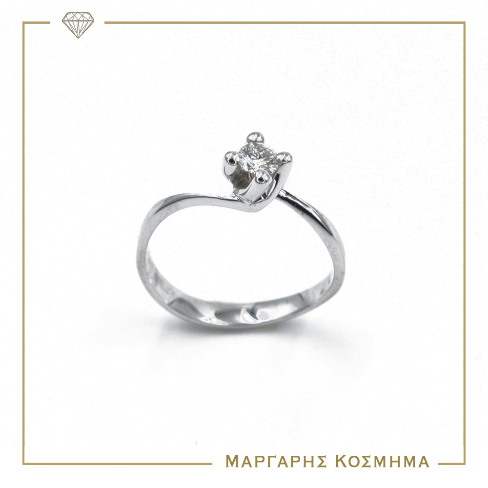 BR128 Λευκόχρυσο Μονόπετρο Δαχτυλίδι Με Μπριγιάν
