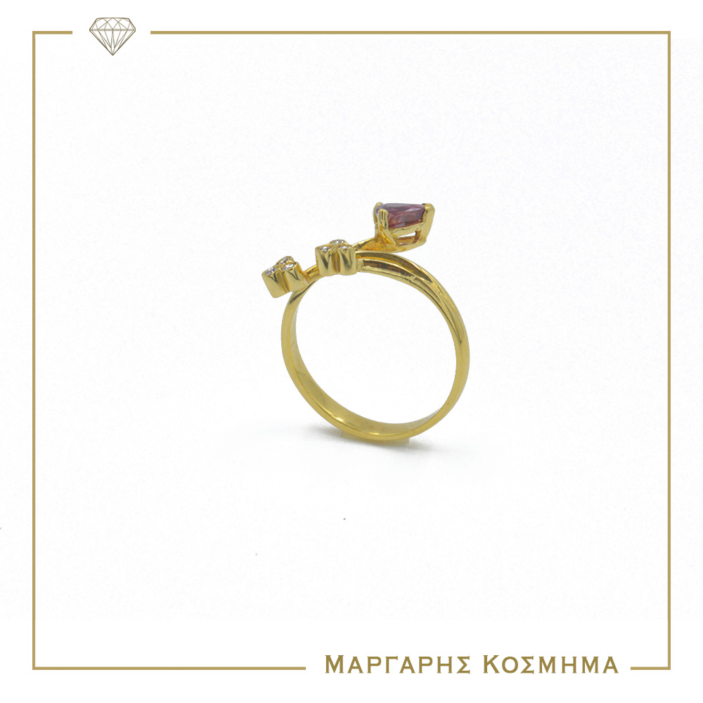 Δαχτυλίδι με ρουμπινή (0,08) και 6 μπριγιάν (di.0,12) σε κίτρινο χρυσο