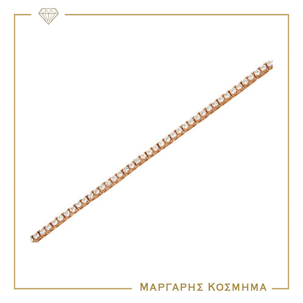 Γυναικείο βραχιόλι ριβιέρα, από ατσάλι ροζ, διακοσμημένο με πέτρες ζιργκόν και λουστρέ φινίρισμα. Το κούμπωμα είναι ρυθμιζόμενο.