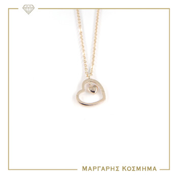 NTL-25 Γυναικείο κολιέ Ατσάλινο Καρδια με αλυσιδα από ατσαλι σε χρωμα ροζ χρυσο με κρικους αυξομειωσης.