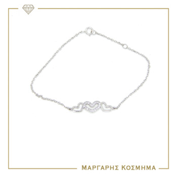 BC149 Γυναικείο Λευκόχρυσο Βραχιόλι Με Καρδιές