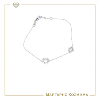 Ρομαντικό γυναικείο λευκόχρυσο βραχιόλι Κ14 , με καρδιές.