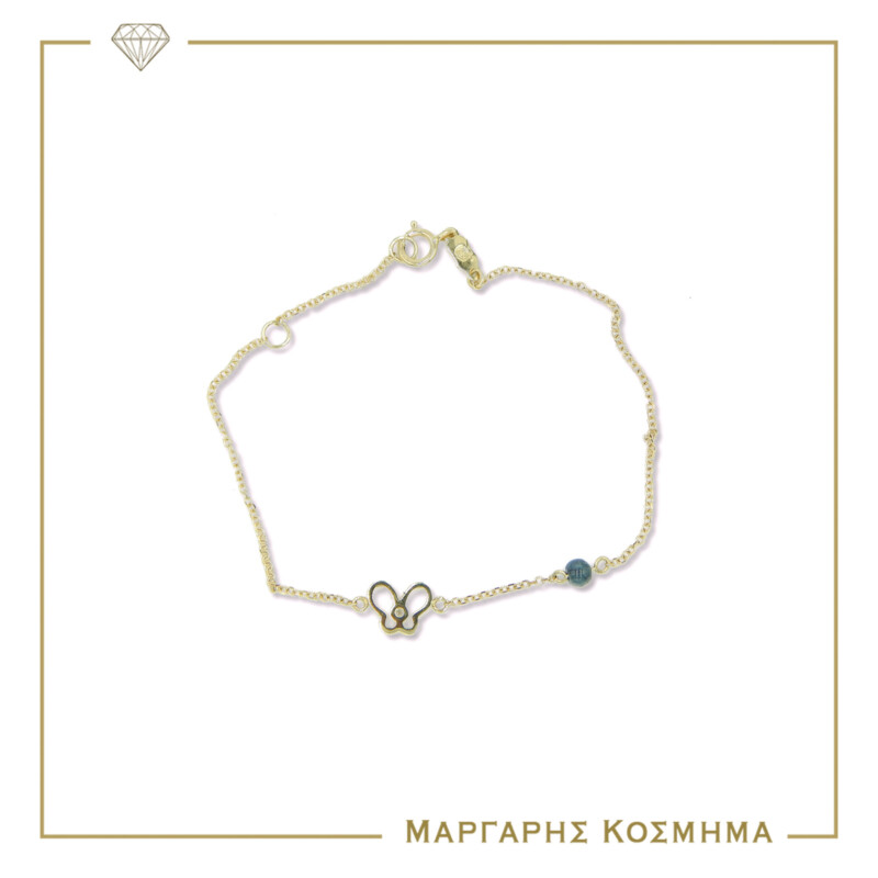 Μοντέρνο γυναικείο βραχιόλι σε κίτρινο χρυσό Κ14 με πεταλούδα.