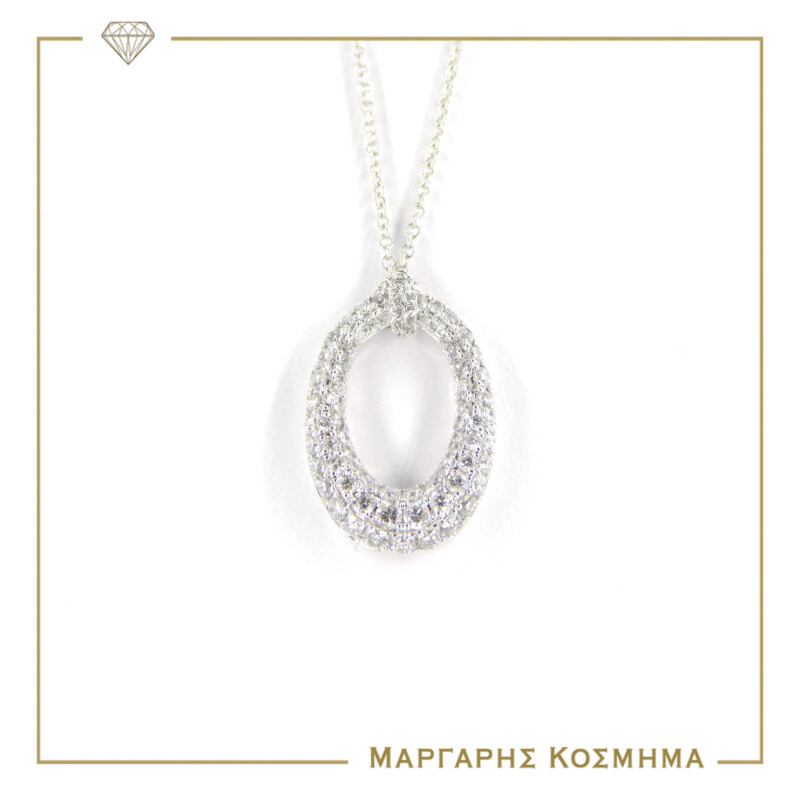 Γυναικείο κόσμημα λαιμού από λευκόχρυσο 18 καρατίων σε οβάλ σχήμα διακοσμημένη με διαμάντια κοπής μπριγιάν (DI 0,41) αστραφτερό αποτέλεσμα καταπληκτικo κομμάτι!