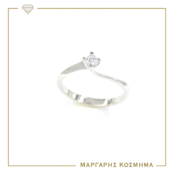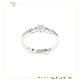 BR103 Λευκόχρυσο Μονόπετρο Δαχτυλίδι Με Μπριγιάν