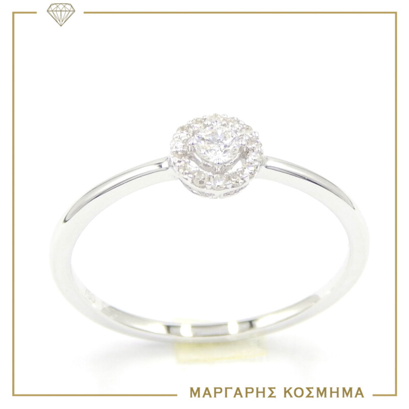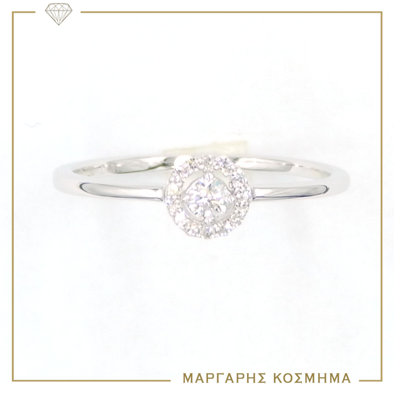 BR140 Λευκόχρυσο Δαχτυλίδι Με Μπριγιάν