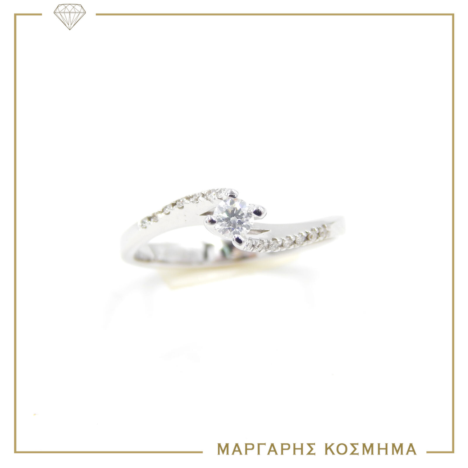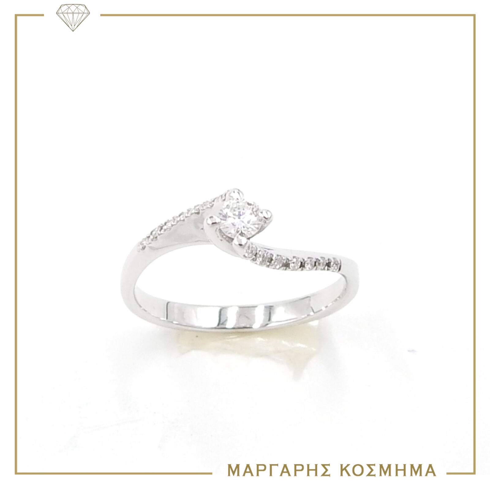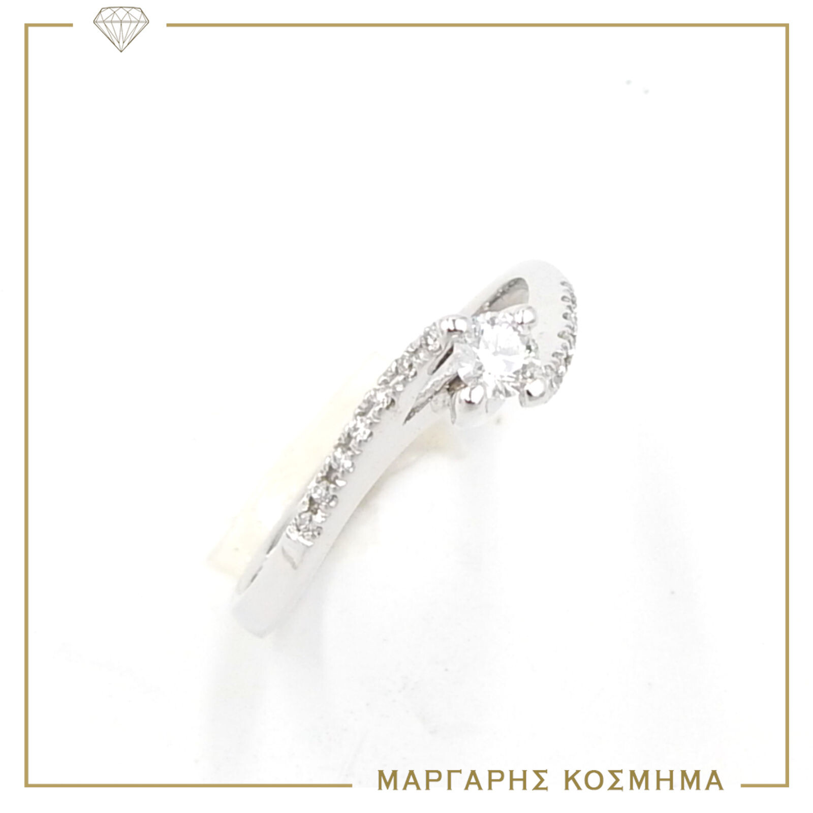Χειροποίητο μονόπετρο σε λευκόχρυσο 18 καρατιών με πολύ στιβαρό δέσιμο πέτρας . Όμορφη κεντρική πέτρα και πλαϊνές σε σειρά. Κεντρική πέτρα BR.0,11 πλαϊνές πέτρες DI.0,14 .Δίνουν ένα αστραφτερό αποτέλεσμα που εντυπωσιάζει , με την εγγύηση (Giannakakis Handmde jewellery)