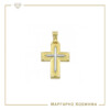 Εντυπωσιακός σταυρός αρραβώνα ή βάπτισης χρυσός 14 καρατίων σε λουστρέ και ματ φινίρισμα, τον οποίο στολίζει ένας μικρότερος σταυρός σε λευκόχρυσο με λευκές πέτρες ζιργκόν και ανάγλυφες λεπτομέρειες!