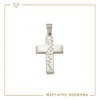 Κλασικός σταυρός αρραβώνα ή βάπτισης λευκόχρυσος 14 καρατίων που συνδυάζει το λουστρέ με το ματ σαγρέ φινίρισμα, σε ιδιαίτερο πομπέ σχεδιασμό και με τις γωνίες του σε πλάγια κοπή
