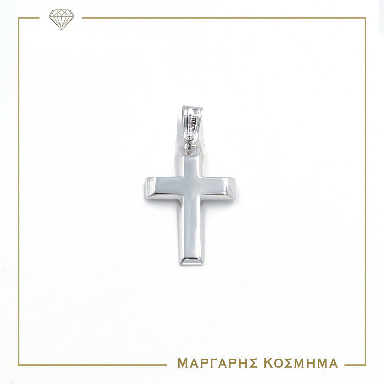 Κλασικός σταυρός αρραβώνα ή βάπτισης σε λευκόχρυσο 14 καρατίων με ματ φινίρισμα, σε πομπέ σχεδιασμό και με τις γωνίες του σε πλάγια κοπή!