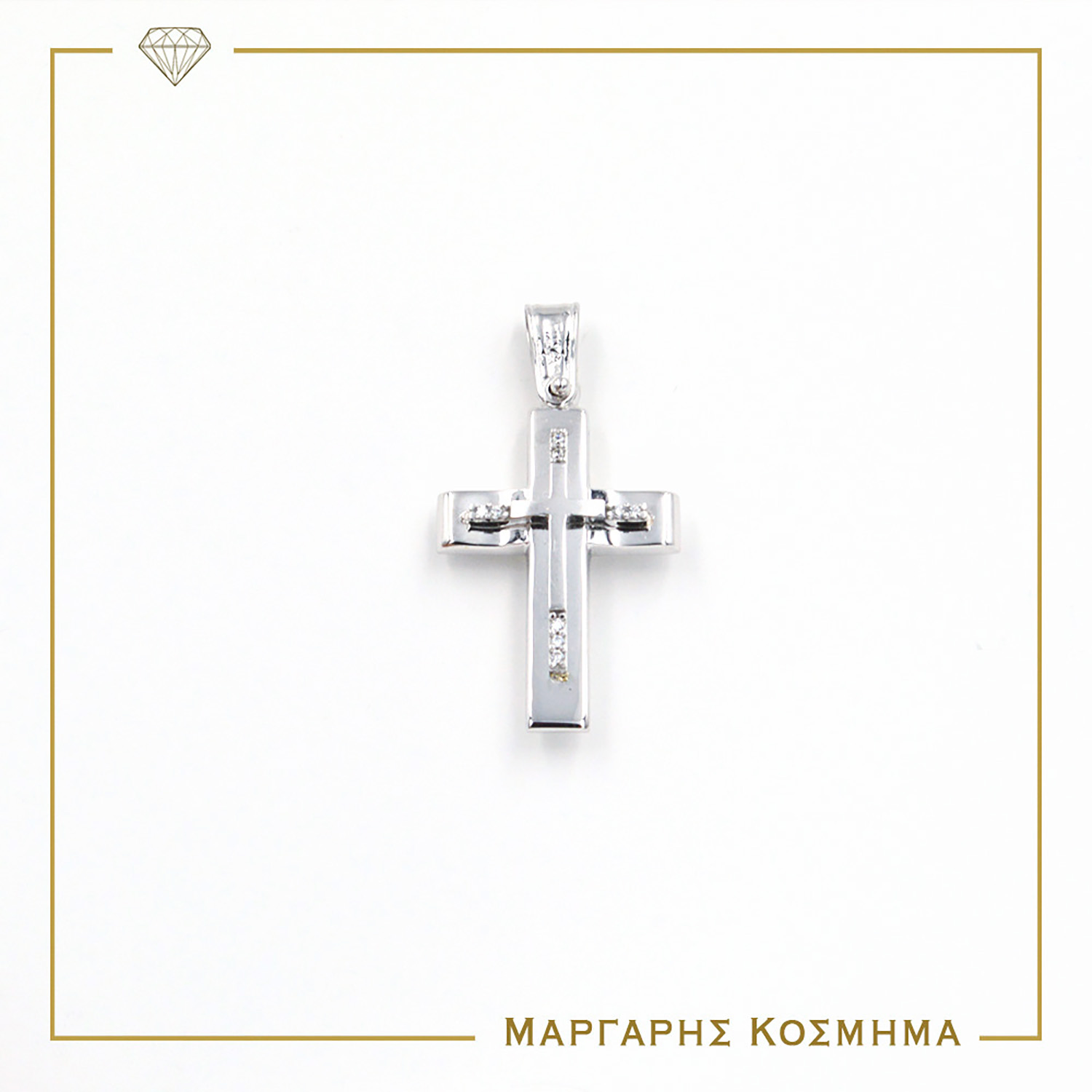 CR336 ΤΡΙΑΝΤΟΣ Λευκόχρυσος Σταυρός Με Τον Εσταυρωμένο