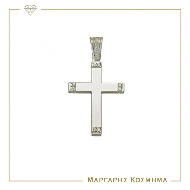 Σταυρος Τριαντος σε λευκο χρυσο Κ-14 ΜΑΣΙΦ λουστρε με ζιργκον.