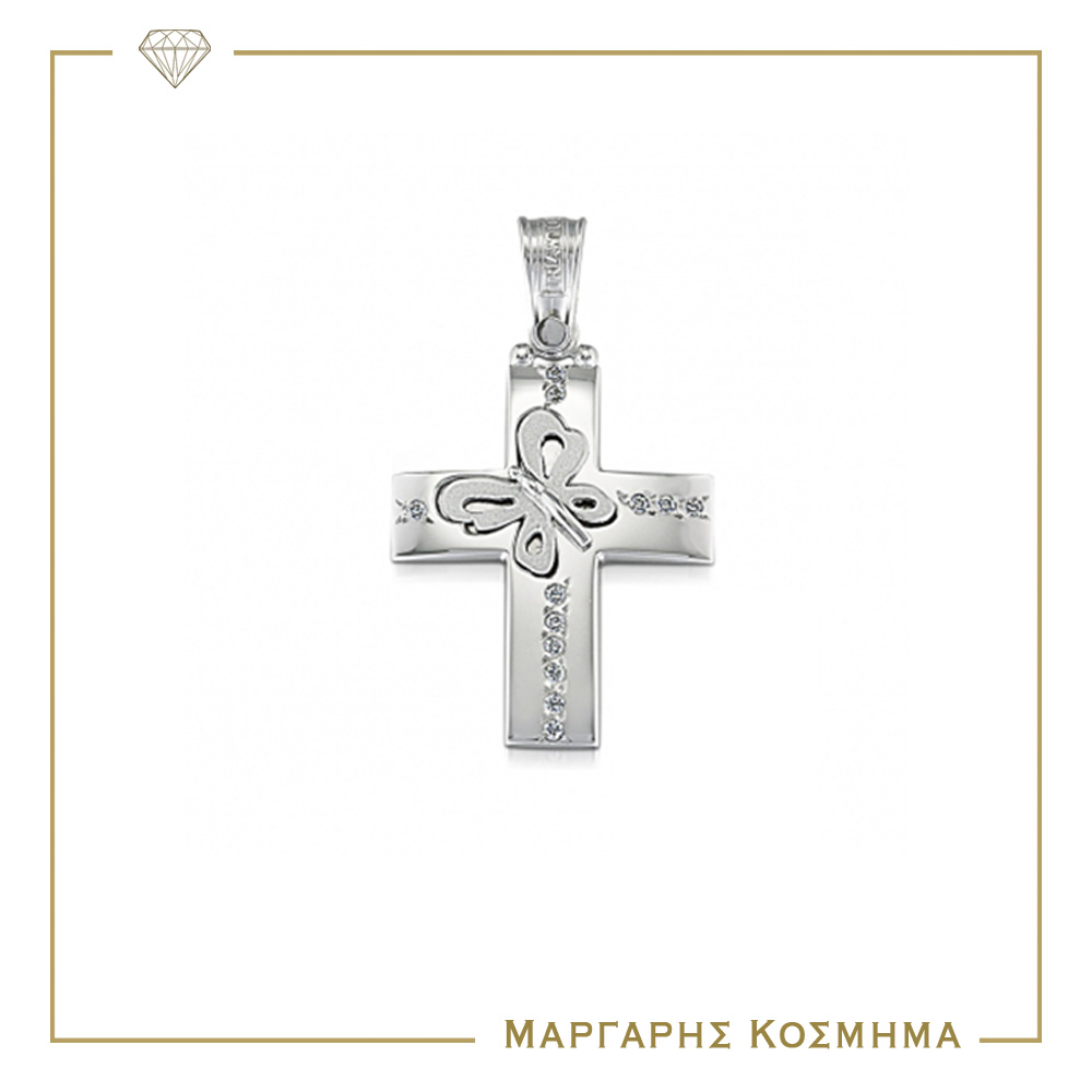 CR377 ΤΡΙΑΝΤΟΣ Λευκόχρυσος Σταυρός Με Πεταλούδα