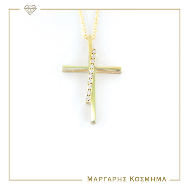 Εντυπωσιακός σταυρός αρραβώνα ή βάπτισης με αλυσίδα απο χρυσό 14 καρατίων σε λουστρέ φινίρισμα, διακοσμημένος στην κάθετη επιφάνεια του με λευκές πέτρες ζιργκόν!