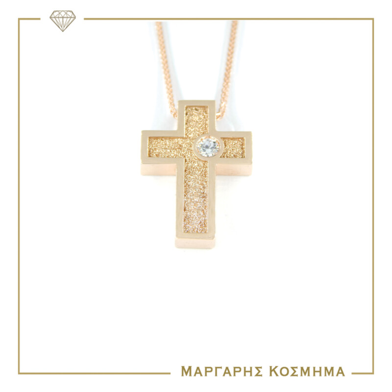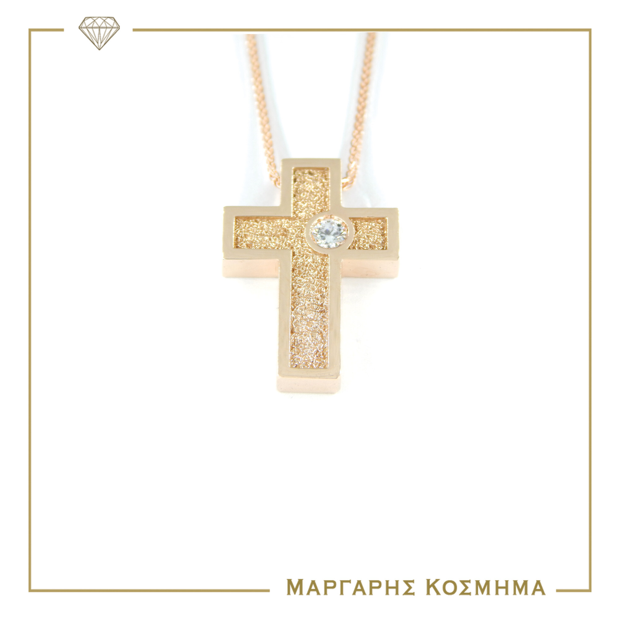 CRCH115 Ροζ χρυσο σταυρός με αλυσιδα