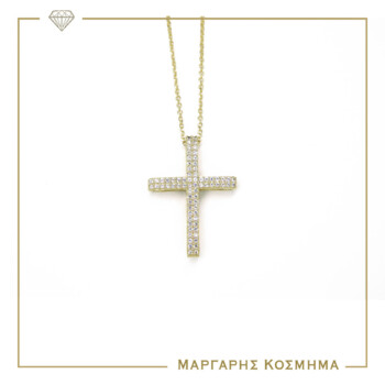 CRCH109 Κιτρινο χρυσο σταυρος με καδενα