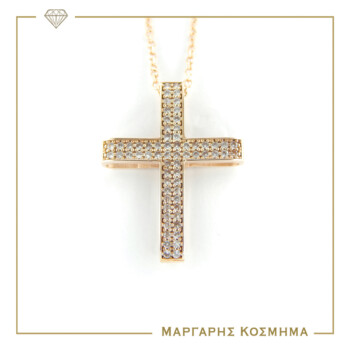 CRCH102 Ροζ χρυσο σταυρος με αλυσίδα