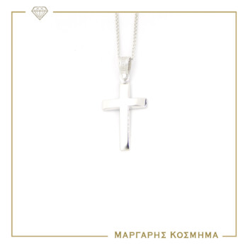 CR505 Σταυρός Λευκόχρυσος με αλυσίδα