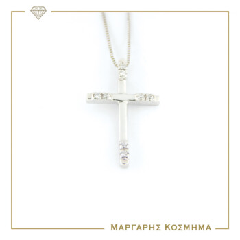 CRCH118 Σταυρός Λευκόχρυσος με αλυσίδα