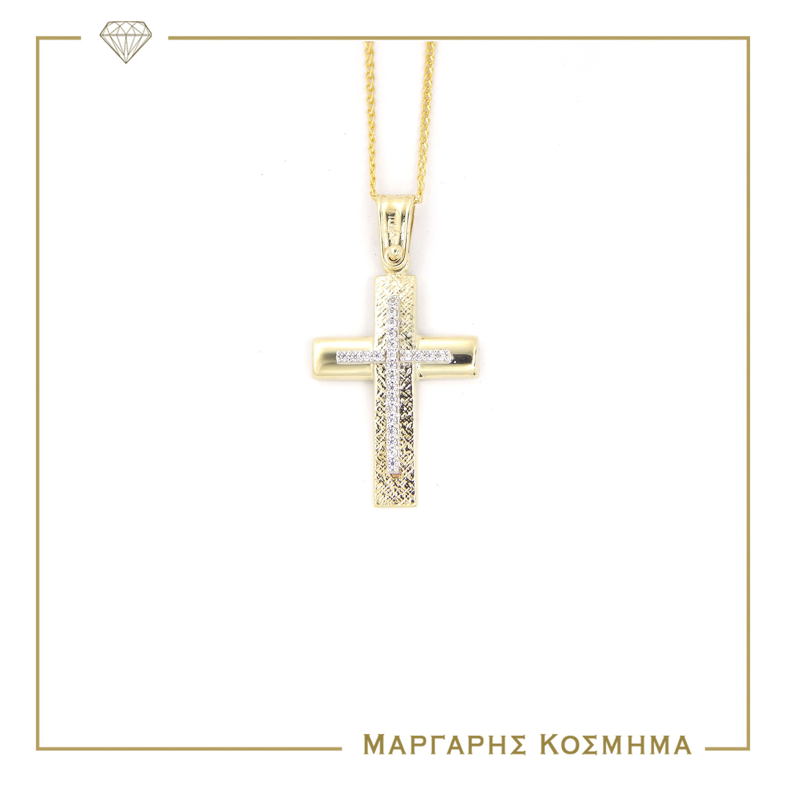 CRCH108 Λευκοχρυσος σταυρος με καδενα