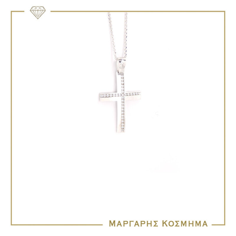 CR505 Σταυρός Λευκόχρυσος με αλυσίδα