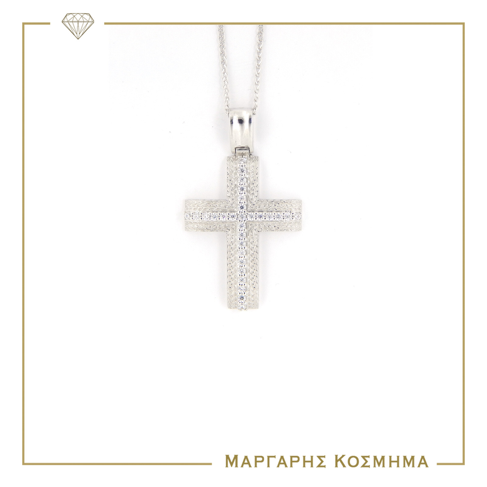 CRCH119 Σταυρός Λευκόχρυσος με αλυσίδα