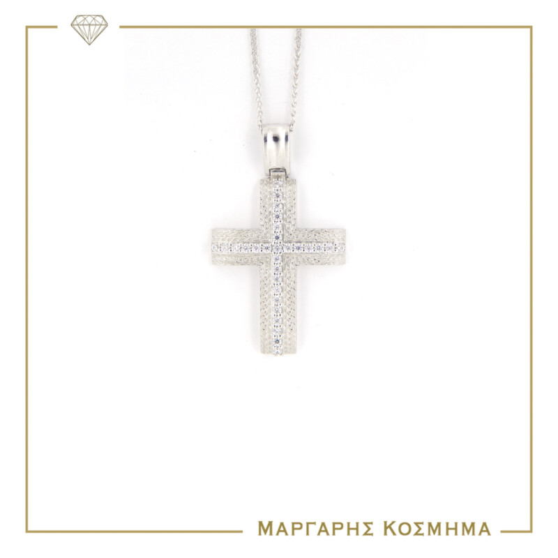 CRCH114 Σταυρός Λευκόχρυσος με αλυσίδα
