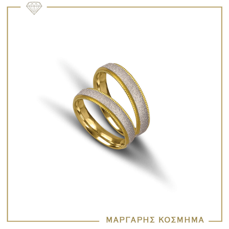 Βέρες αρραβώνα – γάμου σε διχρωμία κίτρινο χρυσό και λευκόχρυσο, με ματ-γυαλιστερο φινίρισμα