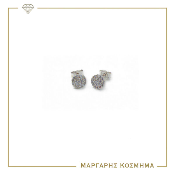 Μοντέρνα γυναικεία λευκόχρυσα σκουλαρίκια Κ14, με ολοστόλιστη ροζέτα!