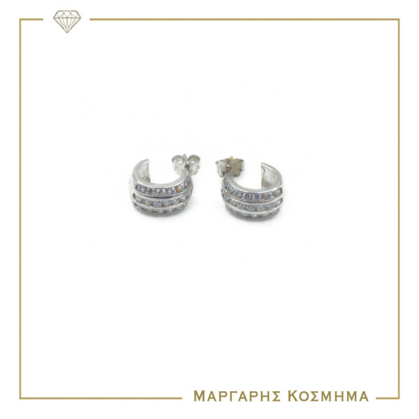 ER111 Γυναικεία Σκουλαρίκια Λευκόχρυσα Με Τριπλή Σειρά
